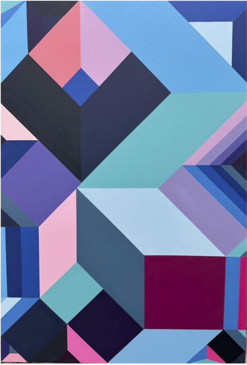 Por meio da cor e do equilíbrio das formas, Kaur reconstrói linguagens, abrindo portais visuais que convidam o olhar a atravessar a superfície e adentrar um universo próprio.